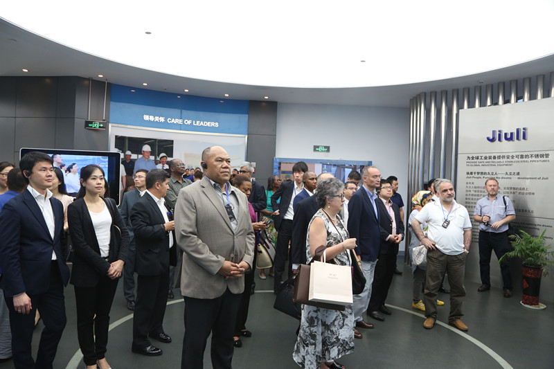 各使節(jié)在公司工作人員的陪同下參觀了久立展廳及研發(fā)中心,了解了久立發(fā)展概況,并做相關(guān)交流。他們對久立的發(fā)展給予了肯定,對久立的熱情接待表示感謝。