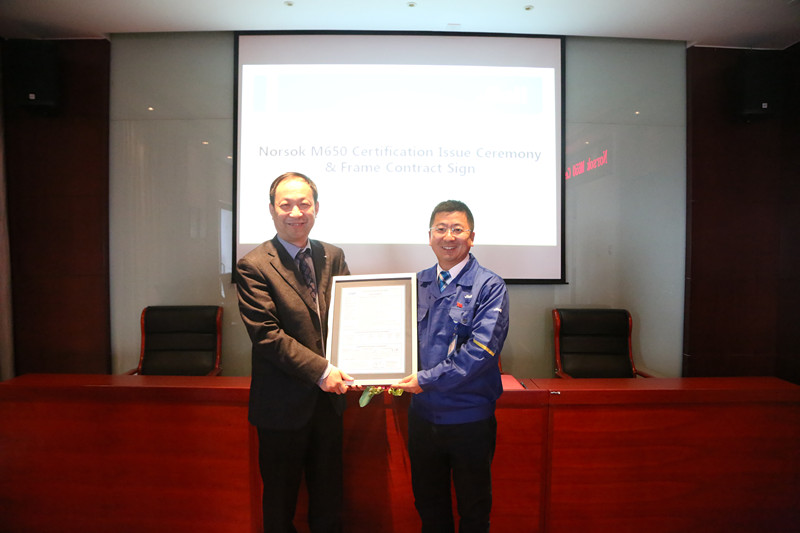 挪威國家石油標準NORSOK M-650是一個全球公認的特材制造商資格認可的標準。它是支持石油公司和天然氣公司對其供應商的認可?,F已被挪威國家石油公司、康菲石油公司、埃克森美孚石油公司、BP石油公司、殼牌石油公司和阿克-克瓦納集團所廣泛采用。NORSOK M-650認證的通過無疑既是肯定,又是一種激勵。它體現了全球石油天然氣行業(yè)對公司產品的認可,為公司開拓更寬廣的市場提供了契機;也激勵了公司不斷提高產品、過程和服務質量,增加客戶滿意度,為全球工業(yè)裝備提供自己安全可靠的產品。