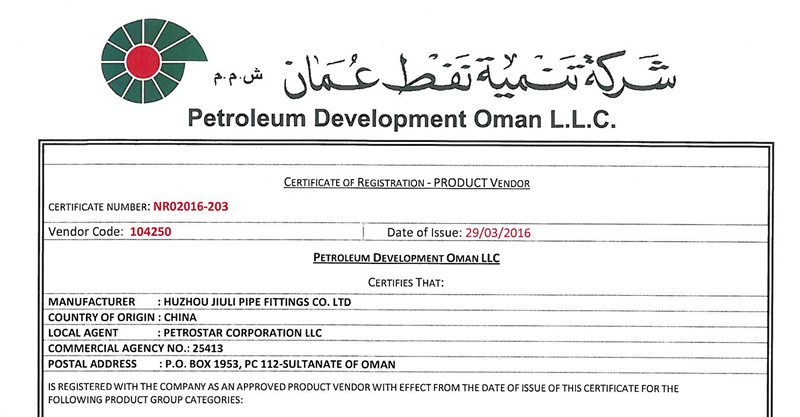 熱烈祝賀久立管件通過阿曼石油開發(fā)公司(PDO)批準(zhǔn)供應(yīng)商認(rèn)證